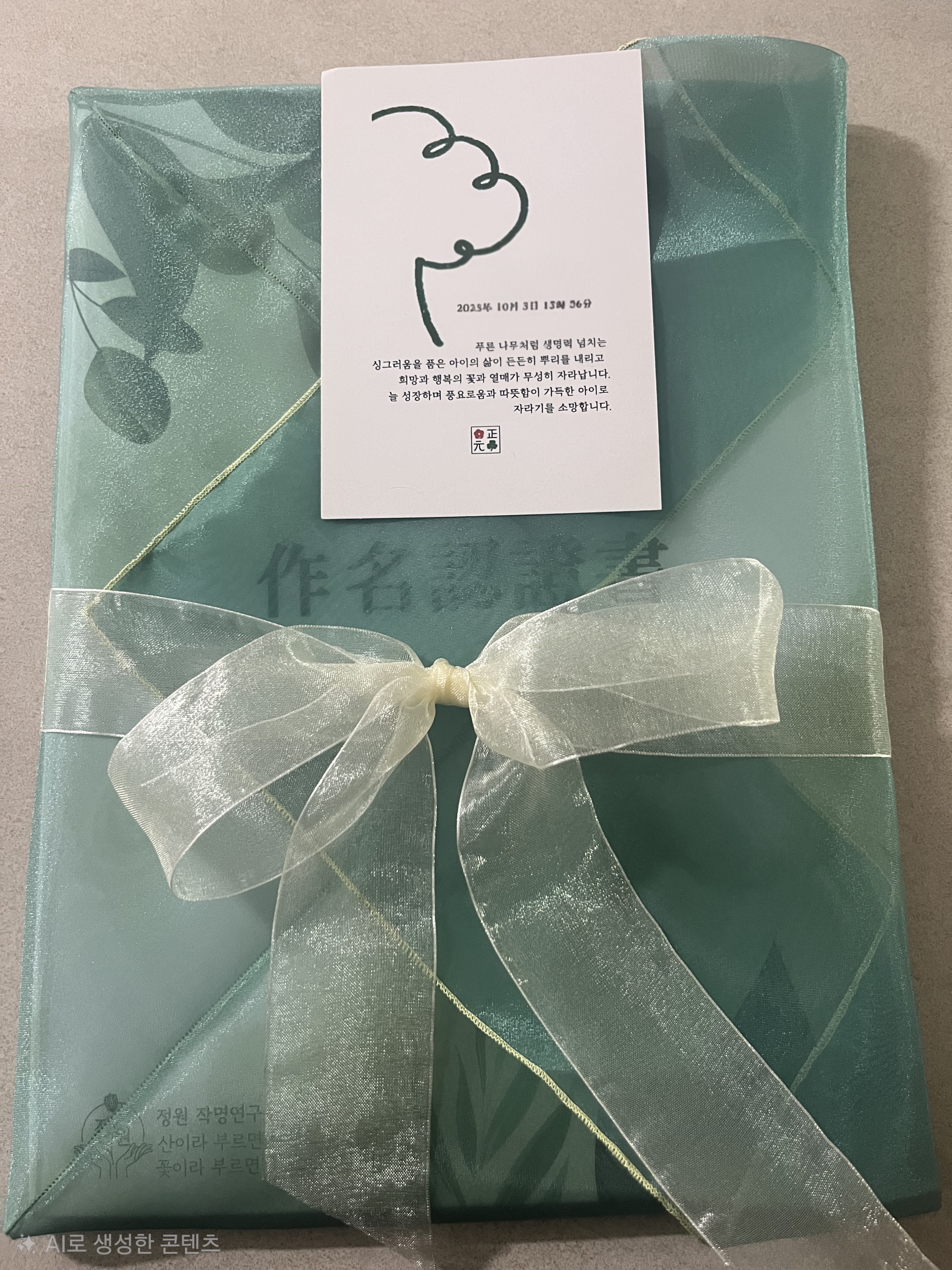 그리고 작명 인증서를 너무너무 정성스럽게 보내주셔서 감동이었어요 ㅠㅠ 한글자 한글자 의미도 자세히 설명해주시고, 정말 우리 아이 생각하면서 지어주신 게 느껴지더라구요.